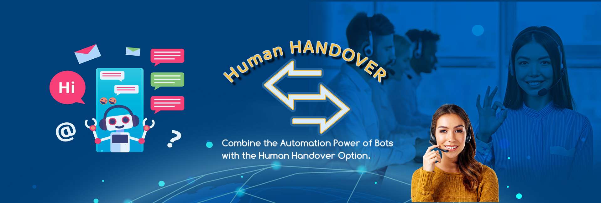 Combine the automation power of Bots with the human handover option. Use Bots to do the heavy lifting before handing over the conversation to our Account Representative(s) or a member of your Team(s). Qualify your website visitors to find the best leads with our human handover option.